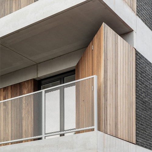 The façade has maximum glazing for a panoramic view on the historic railway bank and the Zurenborg district. At the rear side there are southwest oriented terraces. The building consists of 14 one bedroom flats and one duplex on top boasting a large roof terrace.