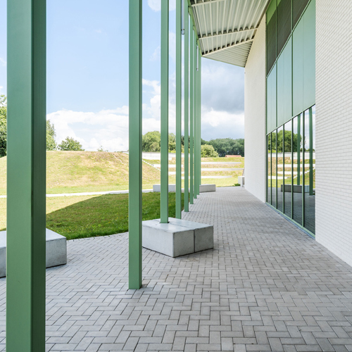 Clarity, overview and functionality were the starting points of the design. A spine, running through the entire site, connects the various sports disciplines with each other in a simple but clear way, both outside and inside the building. On the south side of the existing sports centre, we designed a new sports hall (32x48m) with associated changing rooms. Daylight is brought into the hall via north-facing skylights in the shed roofs. On the upper floors, there is a grandstand with a view of the sports hall, a multifunctional hall of mirrors, various facilities for staff, a combat sports hall and technical rooms.