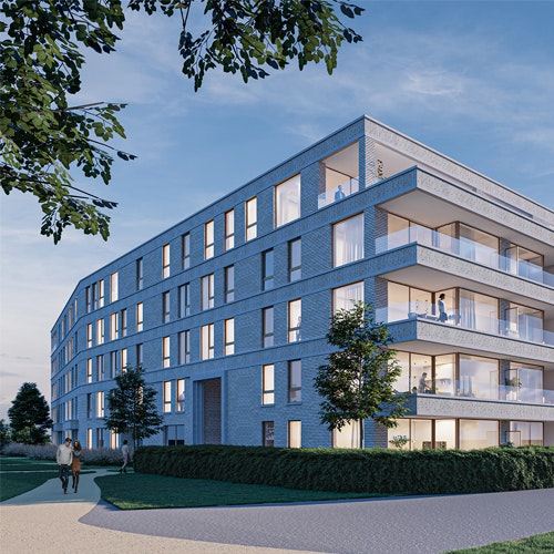 The eight apartments are built towering around the central staircase. This tower is a very compact cube holding four 3 bedroom apartments, two studio flats and on top two duplex apartments with 4 bedrooms.