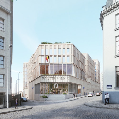 The new OCMW Brussels building is situated in the middle of the Marolles district. It forms the cornerstone of the building block determined by the UMC Sint-Pieter and the existing OCMW office buildings. Including offices, social housing, a nursery, a commercial space and a passage for emergency vehicles from the UMC Sint-Pieter, the project contains a mixed and intense program, made up of different uses with different requirements and time frames.